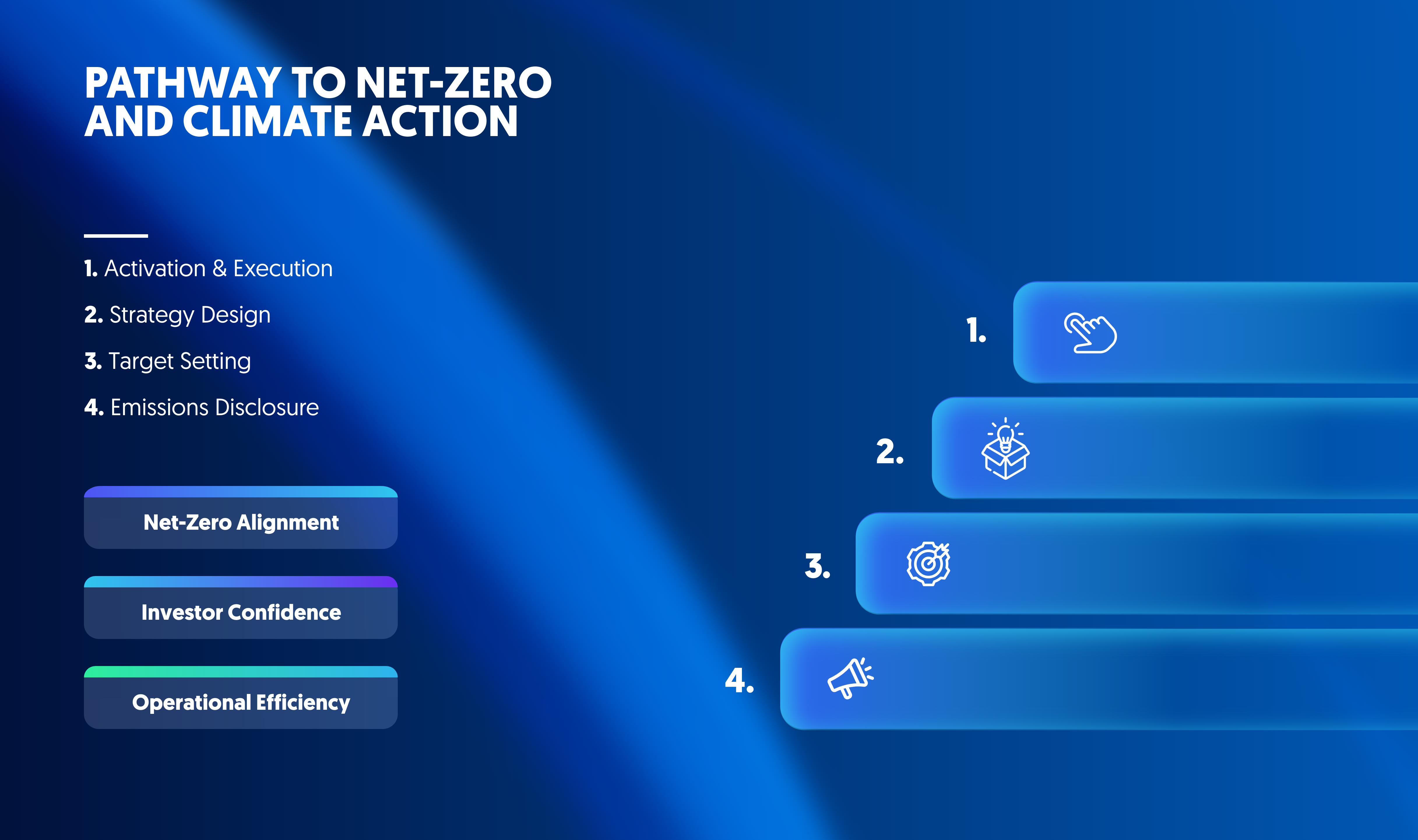 As climate risks intensify and regulatory demands accelerate, organizations are expected to play a proactive role in the transition to a low-carbon economy. Investors, regulators, and customers are prioritizing climate performance as a measure of future resilience. To lead in this environment, organizations must go beyond commitments and design clear, measurable pathways to net-zero. A well-executed climate strategy positions the business for long-term competitiveness and operational efficiency.